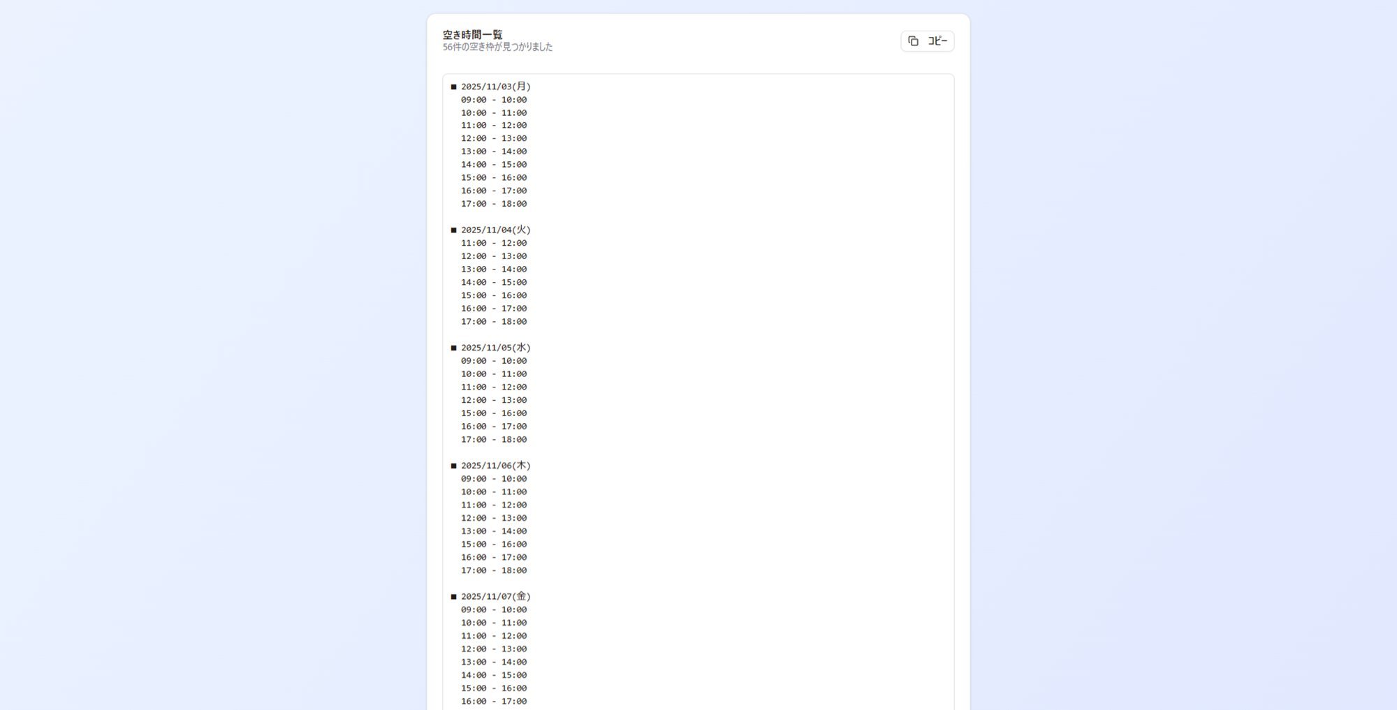 Googleカレンダーの空き時間を自動で抽出し、共有・予約調整を効率化するスケジュール調整ツール